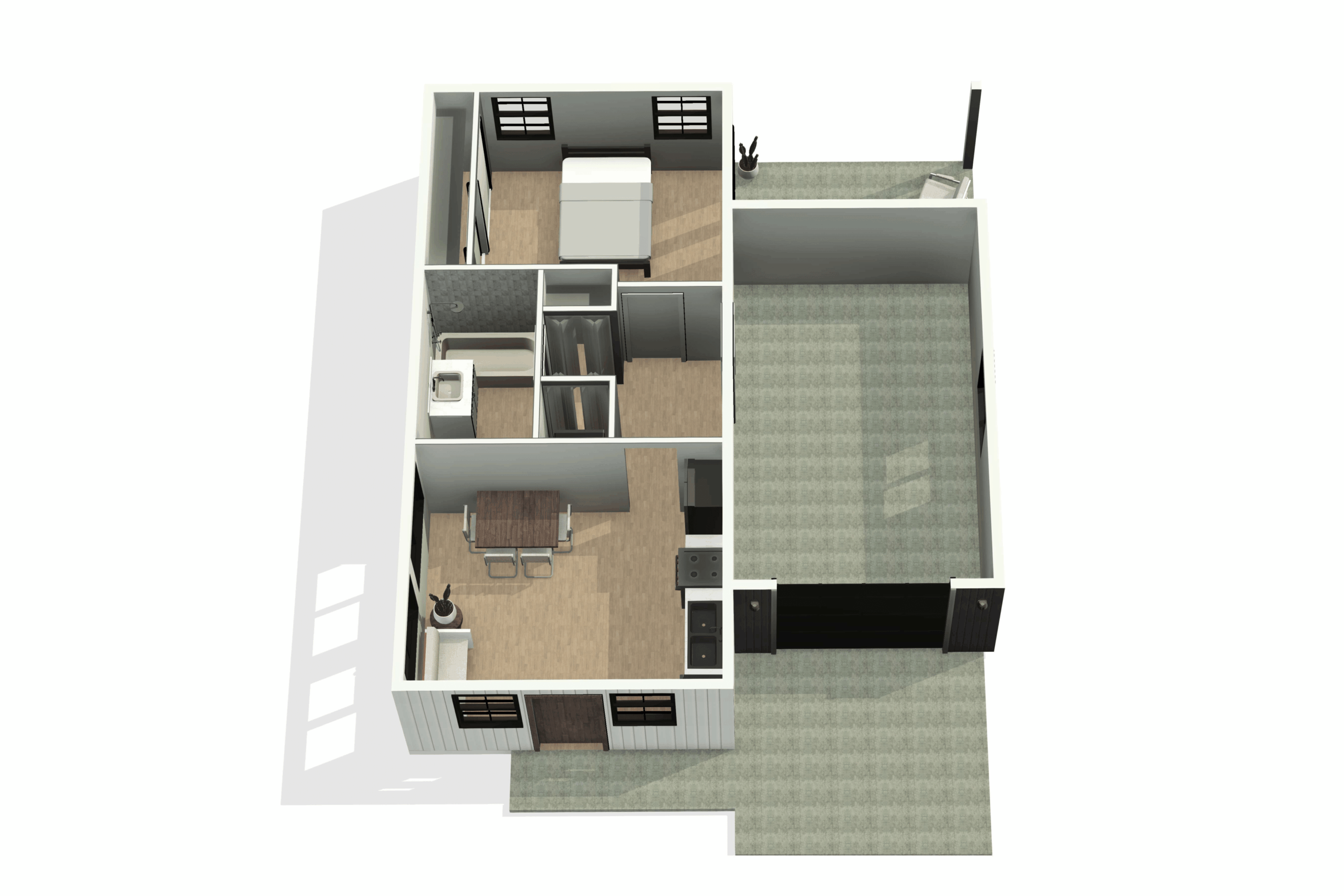 509 sq ft | 1 Bed | 1 Bath | 1-Car Garage