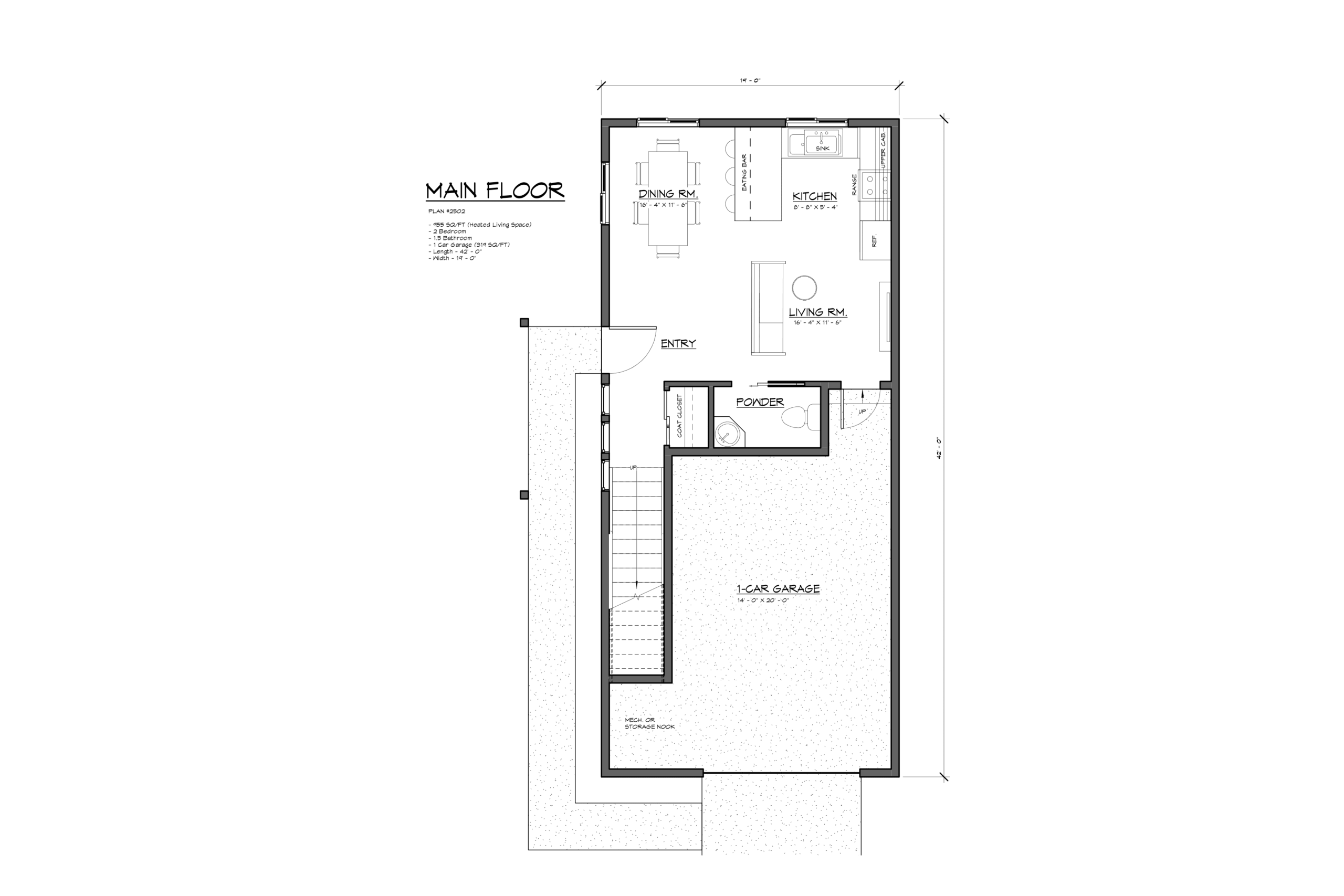 - Living Space: 955 sq ft heated