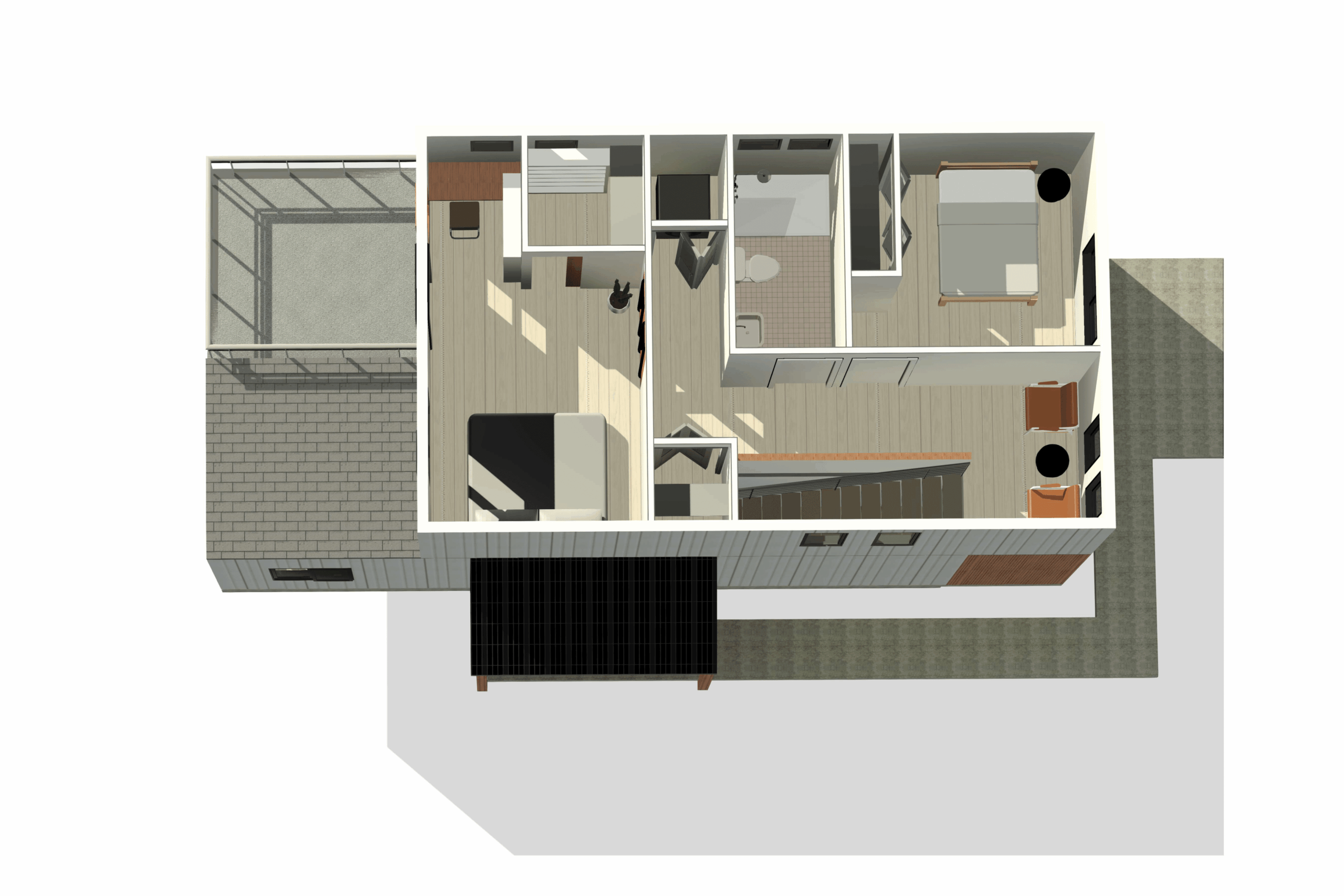 Our most versatile two-story design featuring an attached single-car garage. The main floor combines open-concept living with a powder room for guests, while the upper floor provides two generous bedrooms, a full bathroom, and bonus loft space. The modern exterior with contrasting siding colors fits seamlessly into any neighborhood.